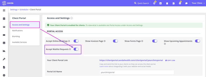 - Set Up Client Portal Notifications When Waitlist Request Submitted