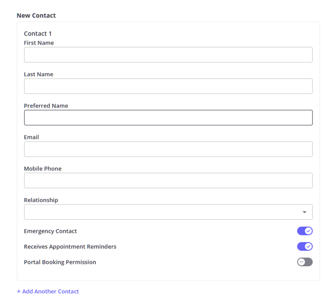 Clients can click + Add Another Contact to add more contacts.