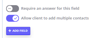The Allow client to add multiple contacts toggle controls whether clients can enter more than one contact.