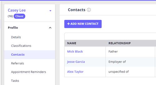 Managing client contacts - such as emergency contacts, parents, guardians, or next of kin - is an important part of maintaining accurate client records.