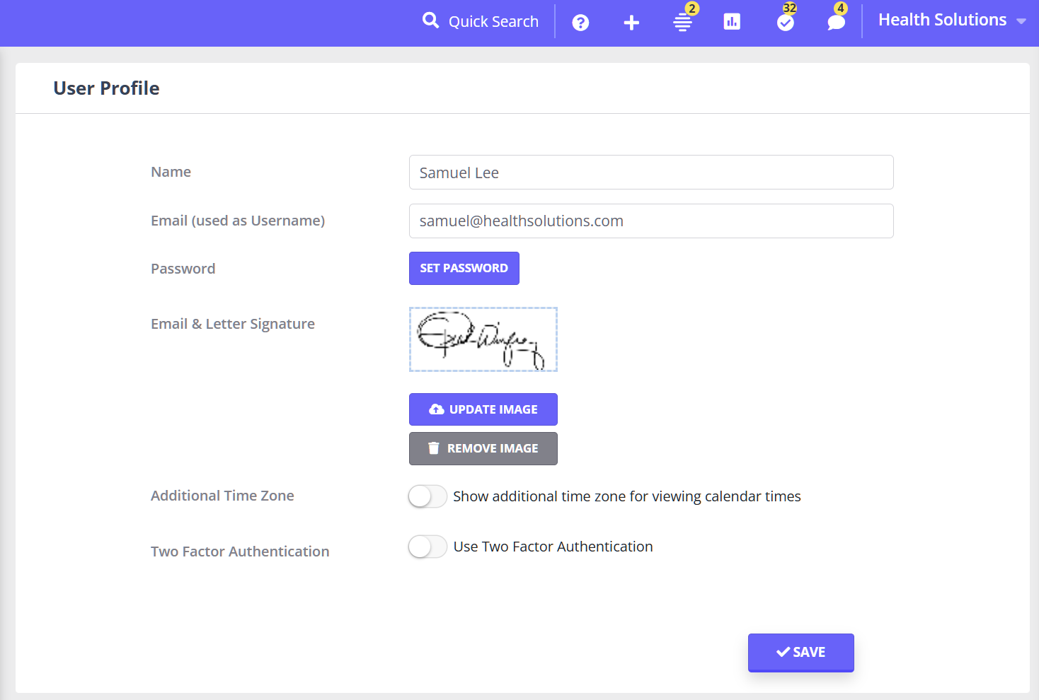- When you create an email or a letter for a client using a template that contains the {UserSignature} merge field, the system will automatically merge your signature image for you.