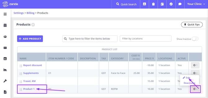 4. This will put the product back into the products page - and you’ll be able to add it to client invoices and appointment details again.