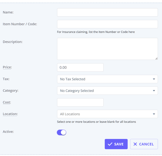 - Cost: this is an optional field you can use to record your business's cost of providing a product. Cost is not visible to clients and other payees.