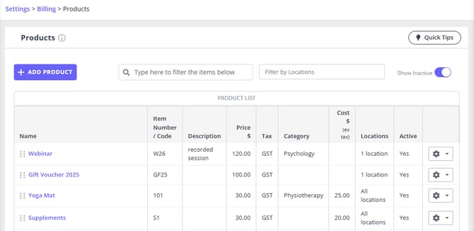 This will put the product back into the products page - and you’ll be able to add it to client invoices and appointment details again.