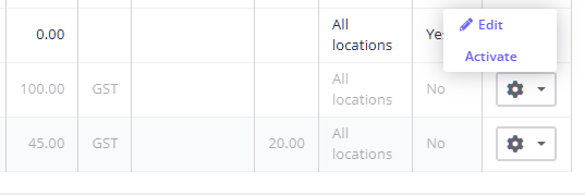 - Action (Edit/Activate)