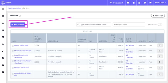 You can add as many services to your Zanda account as you need. These services are attached to your appointments and are generally used for invoicing.