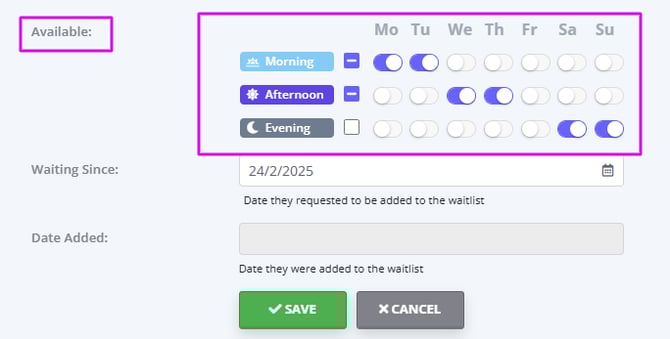 7. Waiting Since: Gives you the ability to select when a client requested to be added to the Waitlist. The days waiting on the waitlist grid will be calculated based on this date.