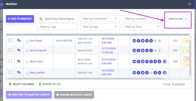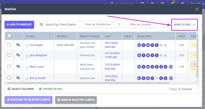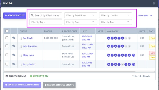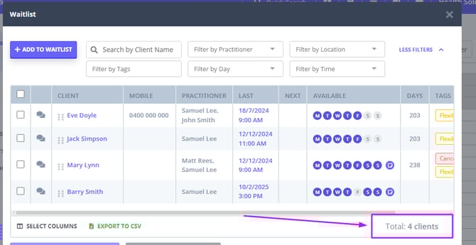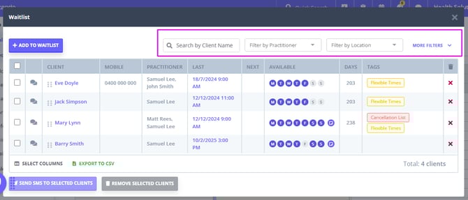 How to Search for Clients in Your Waitlist