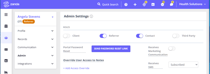 There might be circumstances when you need to add a referrer or a third party as a contact to your client, for example, if they need to be allowed to make appointment bookings or receive appointment reminders on behalf of your client. There is just one extra step you need to make to add them as a contact to a client: