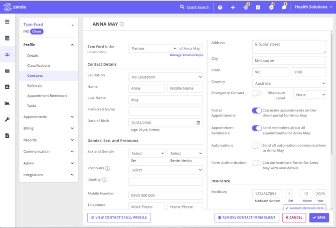 Learn how to manage client contacts in Zanda. Add, edit, or remove contacts to enhance communication, appointment booking, and emergency support for your clients.