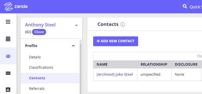 In Zanda, you can add contacts to a client’s profile. Adding a new contact on a client’s profile has many benefits - both for you and your clients.