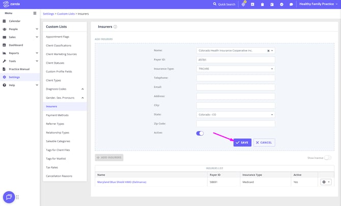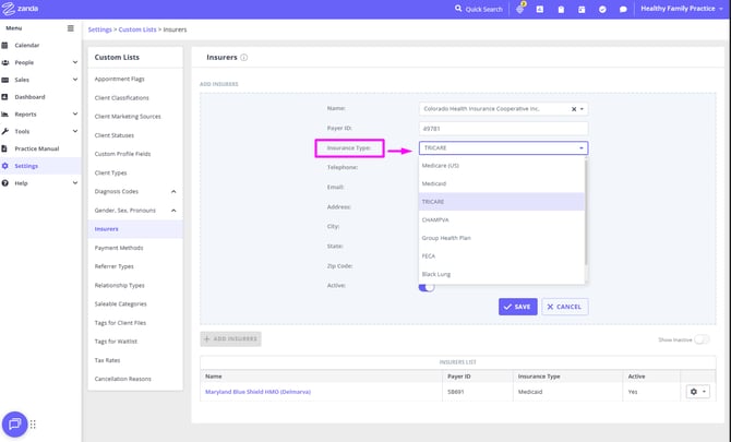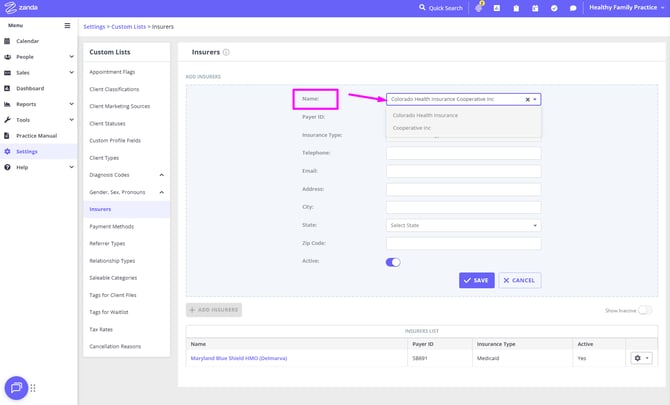 Zanda allows you to create a custom list of all the insurance companies with whom you work: