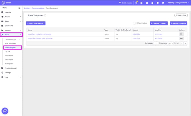 2. Once a form link is generated, a draft on the form can be seen in the client profile > Records > Forms, or Admin > Admin Forms.