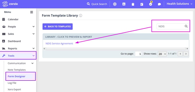 3. You can use the 'NDIS Service Agreement' form that we created for you (import it from the template library at the top-right), or update the form you already have.