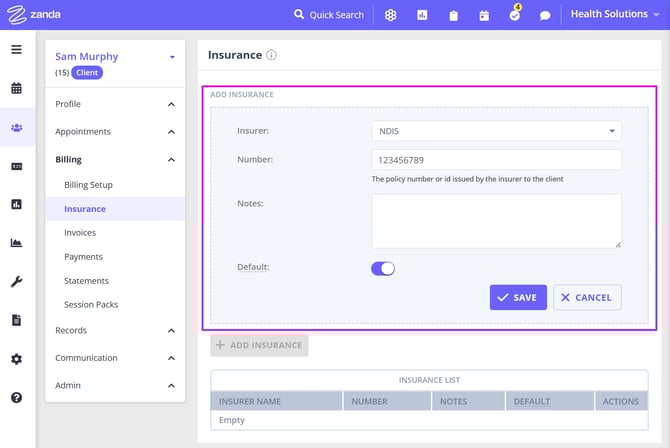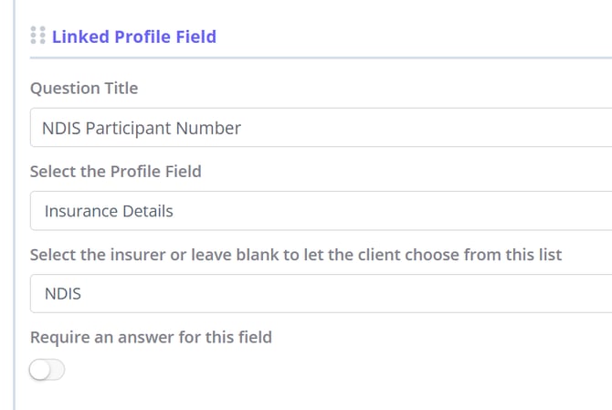 4. The 'Insurance Details' linked profile field, added to the online form template, will be used to automatically populate NDIS participant numbers in client profiles, cutting your admin time significantly: