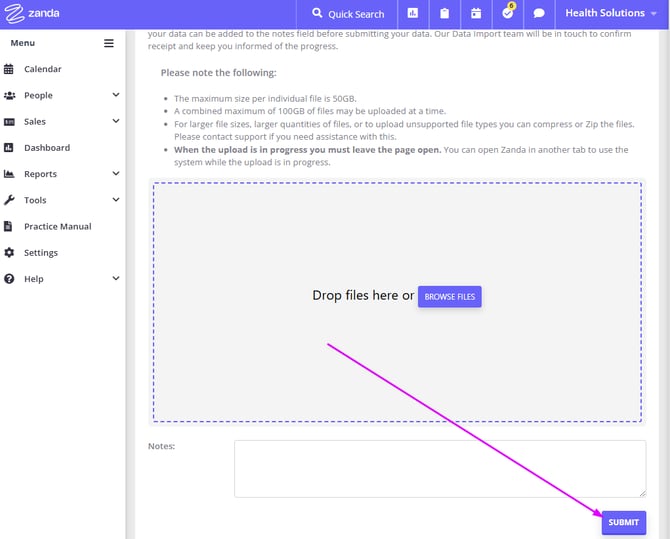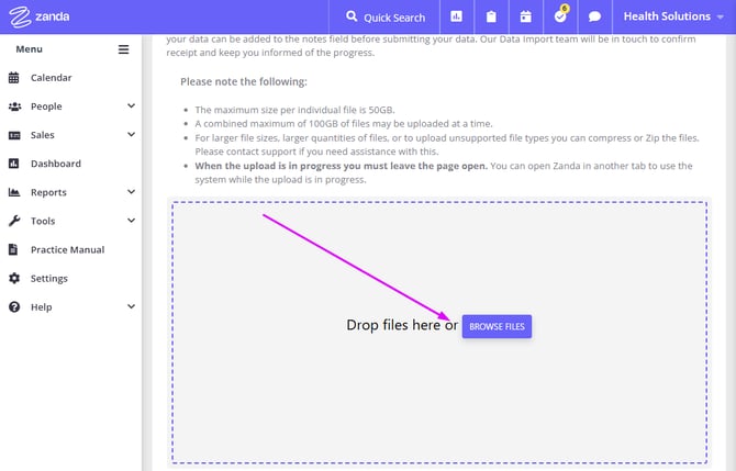 The instructions below illustrate how you could upload your existing client files via your Zanda account for the future import that our Data Import team would organize for you.