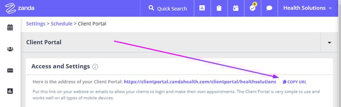 5. Copy your client portal URL to share with your new (and existing) clients.