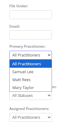 - Assigned Practitioners: practitioners that are set as Assigned Practitioners in a client profile > Admin Manage page.