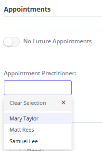 - Appointment Practitioner: a practitioner who provided appointments to the clients which will be included in the list.