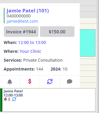 - This indicates there is a balance due on the client's account. You can see the balance in the Appointment Details next to the associated invoice or hover over the icon as seen below.