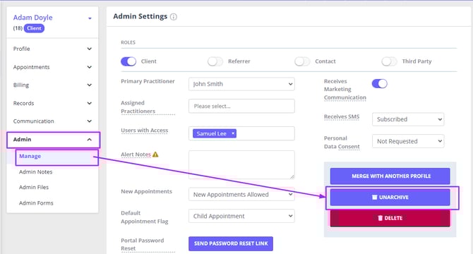This will unarchive that client and make them active, meaning you can again start creating appointments for them in Zanda.