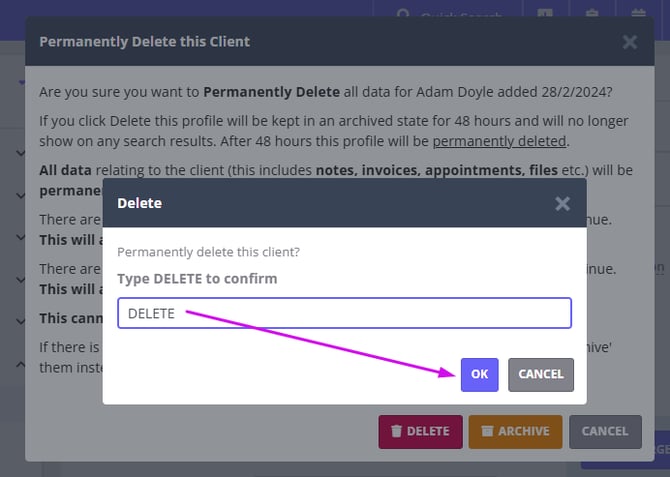 Here’s how you can flag a client profile for deletion within 48 hours: