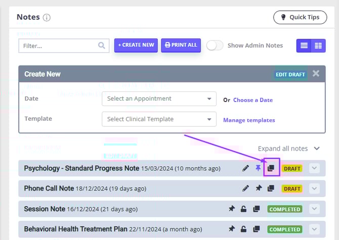- Copying a Session Note