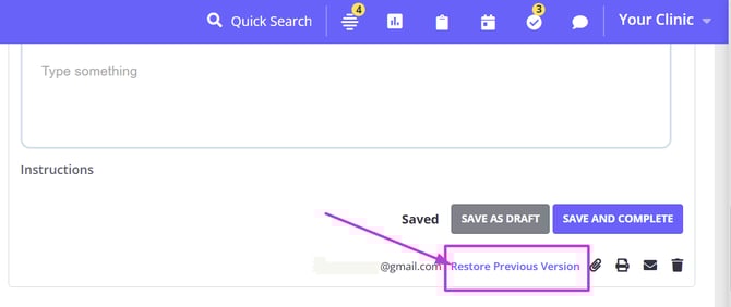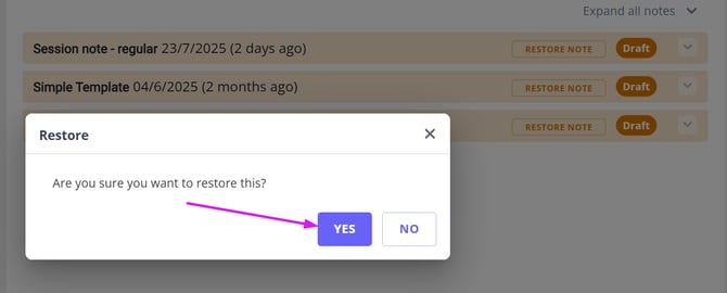 - The note will be restored as active draft, which you'll be able to edit, if necessary, and lock as completed.