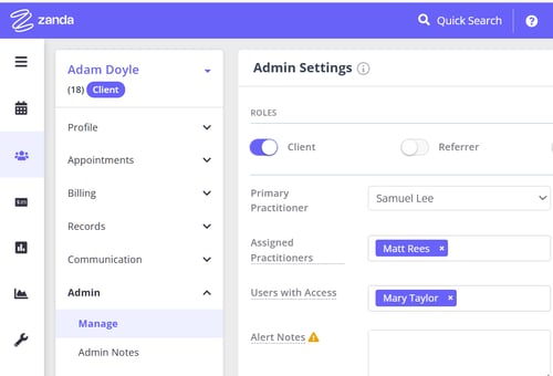 In Zanda, each client profile can be allocated to a preferred practitioner and and multiple assigned practitioners (when a client is treated by a team of practitioners).