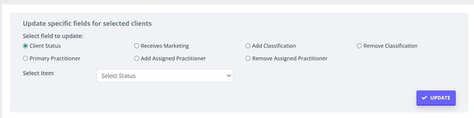 - Use the available advanced search filters to get the list of client profiles to be updated;