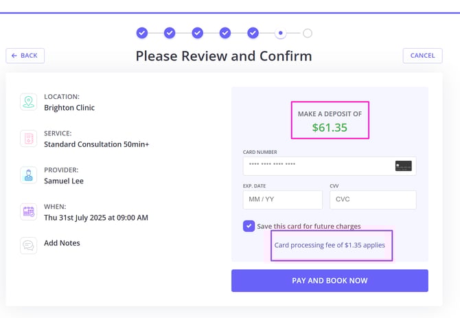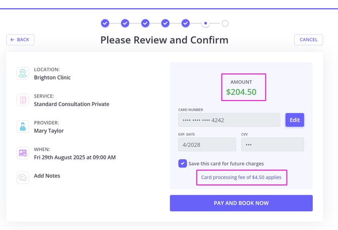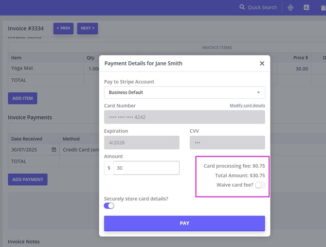 This helps your business cover Stripe's transaction costs while maintaining transparency for both staff and clients.