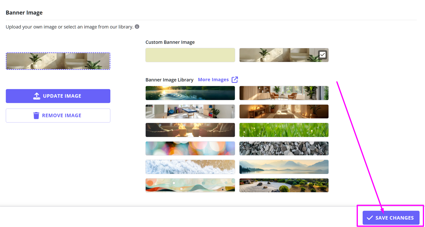 - You can upload a banner image either from our image library or use a custom image created specifically for your brand by selecting it in the provided upload field.