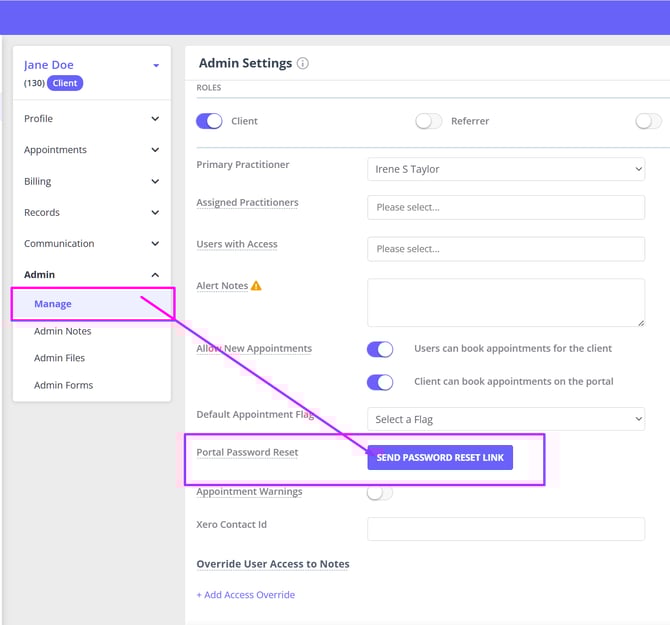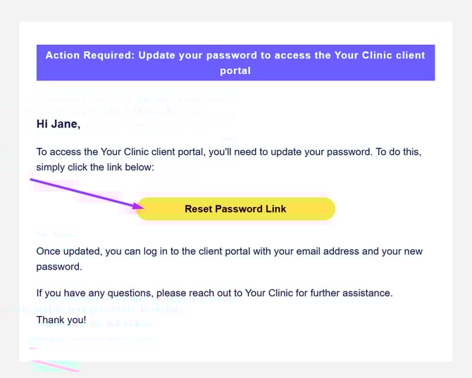 Clinics may also send a reset link to clients who are having difficulty. Here's how this can be done: