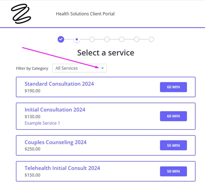 - If you attend a multi-disciplinary clinic, it is possible to first select the category of services they provide.