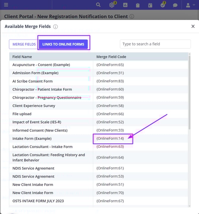- Create a new Online Form Template, or open an existing Template to edit. We decided to use a New Client Intake Form.