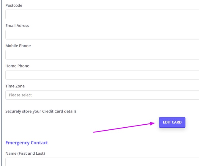 When a client clicks on the Online Form link that you sent them, they will be asked to enter their details.1. The Linked Profile Field that we added to the Communication Template will ask them to enter their credit card details: