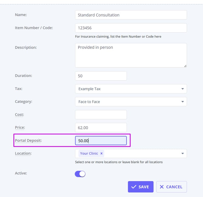 - You can also set a service deposit on specific services in Settings > Billing > Services.