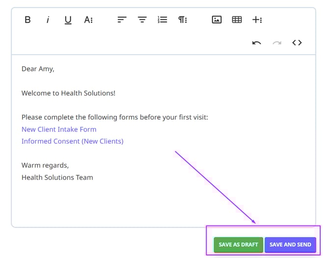 5. Click Save and Send (or Save as Draft to send it later via Communication > Activity).