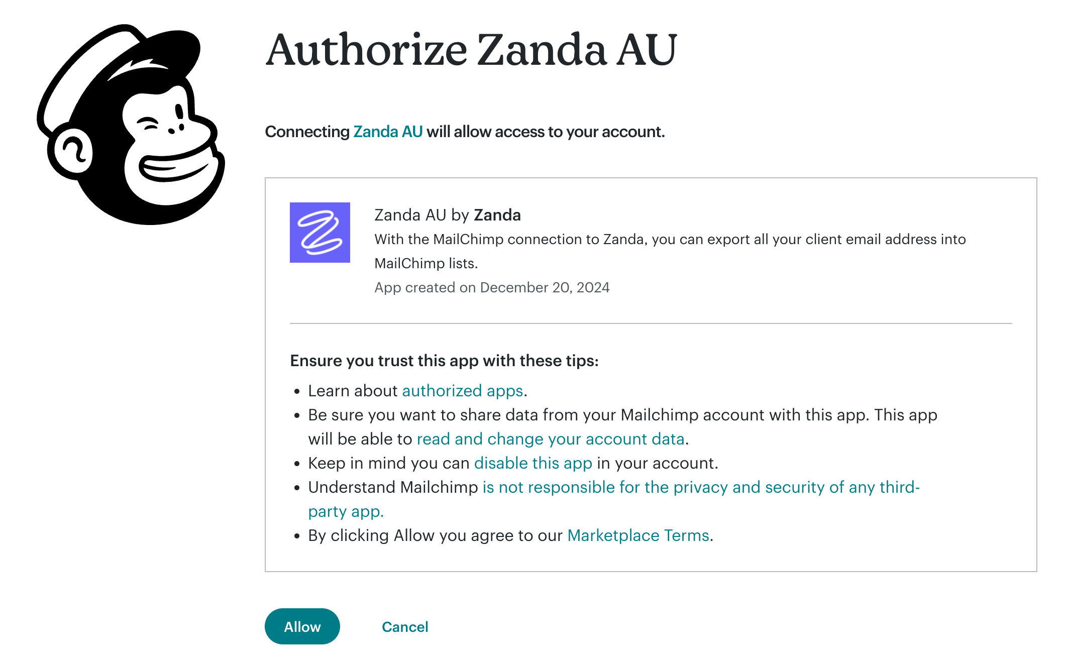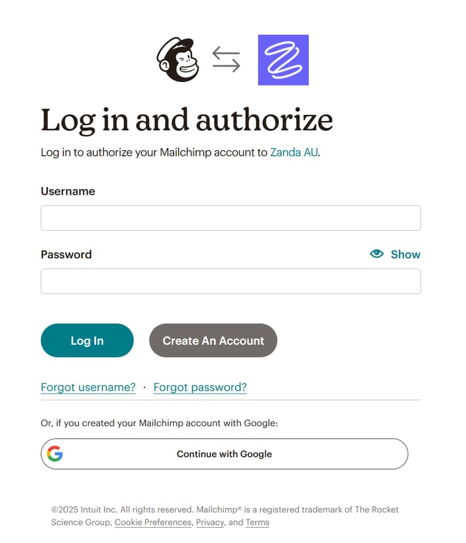 In order to use this integration you will first need to create a MailChimp account (if you do not already have one). Once you have created a MailChimp account you can follow the steps below to connect your Zanda account to your MailChimp account.