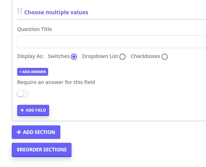 You may choose to display the answer values as switches, a dropdown list or checkboxes: