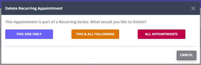 - This One Only: Applies edits to or deletes the current appointment you’re clicking on.