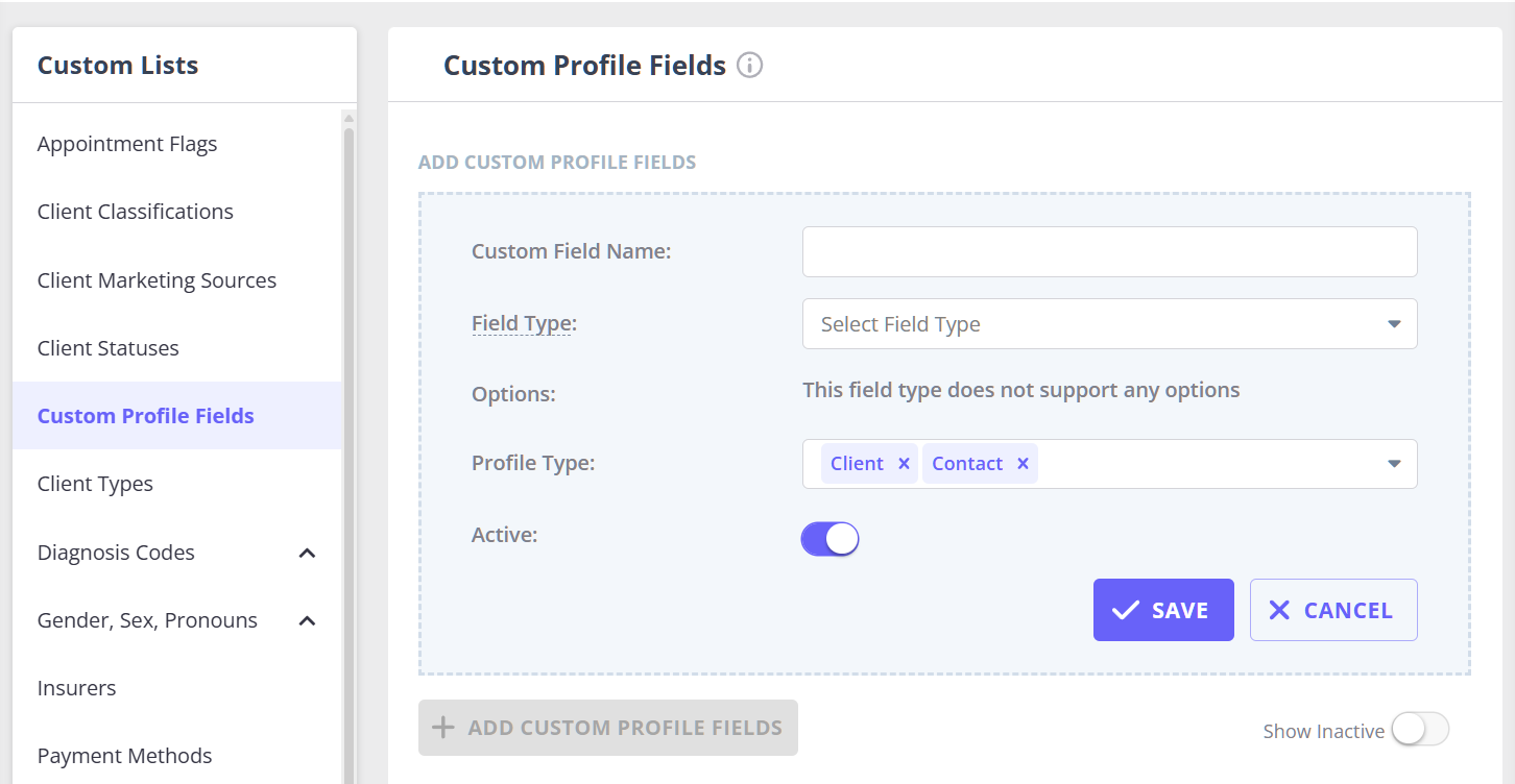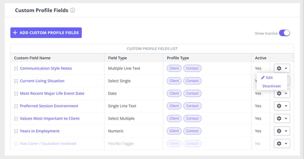 From Settings > Clients > Custom Profile Fields, you can: