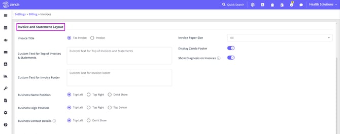 2. On the Invoice and Statement Layout page, you will find the settings to add/remove information from your invoices.