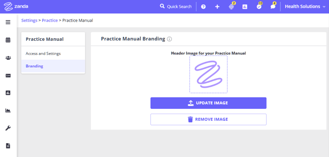 You are able to upload or update your branding header image via User Menu > Account Settings > Practice > Practice Manual > Branding at any time.