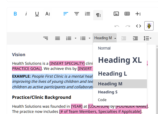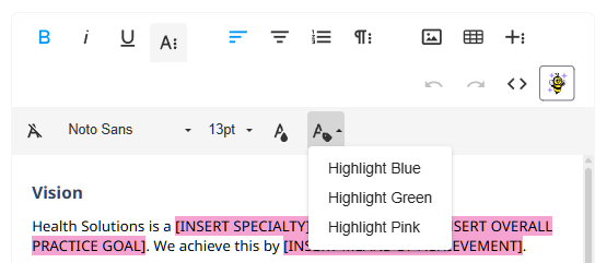 BizzyAI: Write is an AI-powered writing assistant that can help you draft and refine your practice policies and procedures quickly and professionally. This feature is integrated directly into the Practice Manual editor.