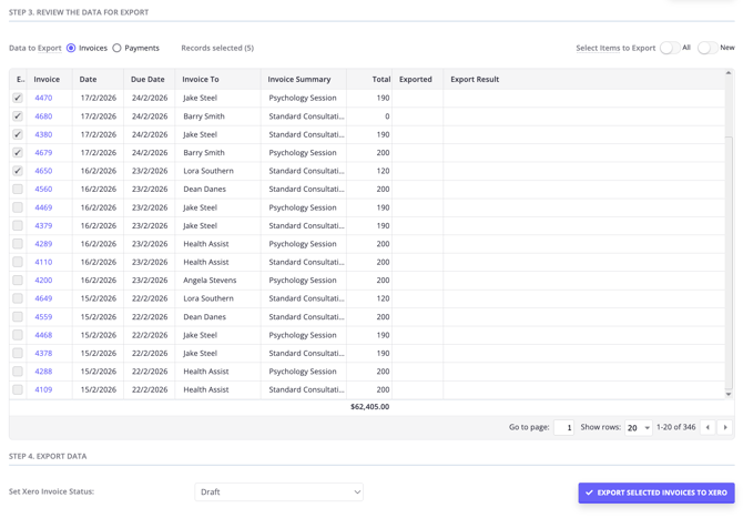 - Once ready, click 'Export Selected Payments To Xero.