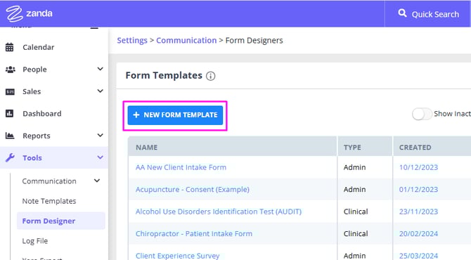 - On the Form Templates page, click + New Form Template.