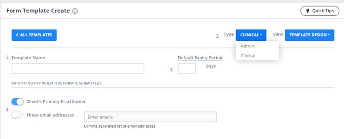 - Start by entering a name for your form in the Template Name field.