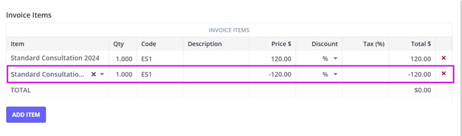 - Make the Price the same amount, but negative. This will make the overall value of $0.