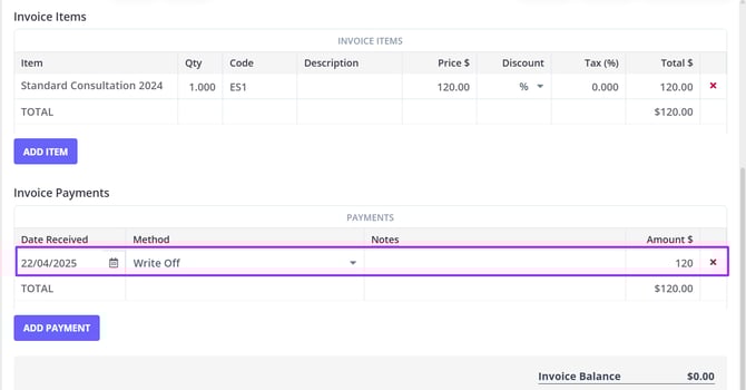 Learn how to handle unpaid invoices in Zanda. Options include updating item prices, adding negative items, using 'Written Off' services or products, or creating a 'Written Off' payment method.